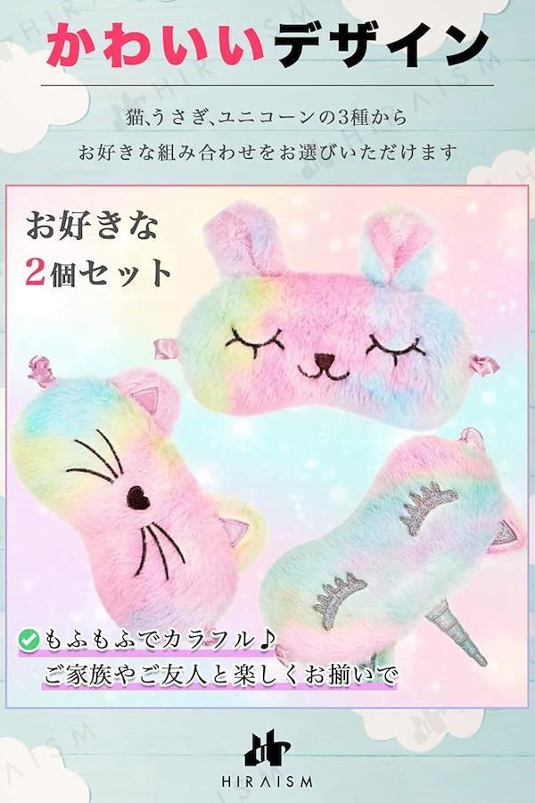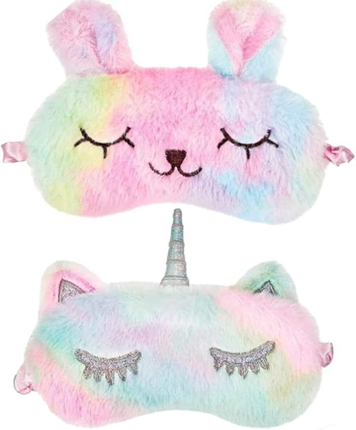 「かわいいデザイン」もふもふでカラフルなウサギとユニコーンの子供用アイマスク2個セットです。