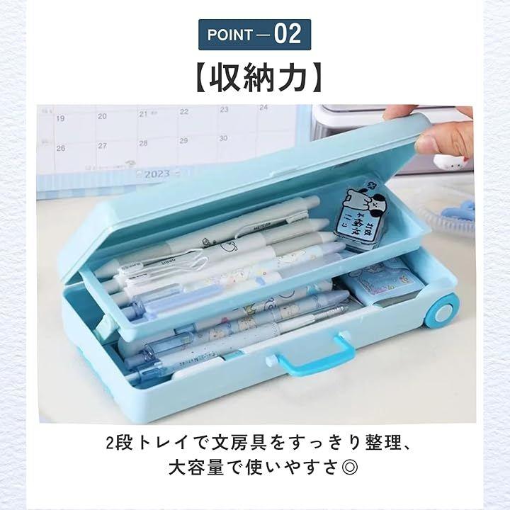 「収納力」2段トレイで文房具をすっきり整理、大容量で使いやすさ。