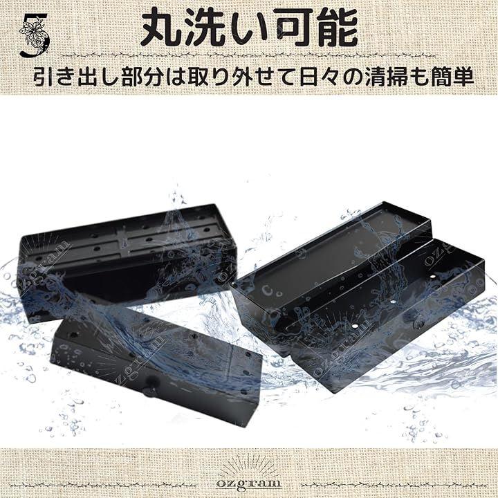 「使いやすい引き出し式」 引き出し式のデザインでホコリやゴミの侵入を防ぎながら、片手で簡単に取り出せる設計です。
