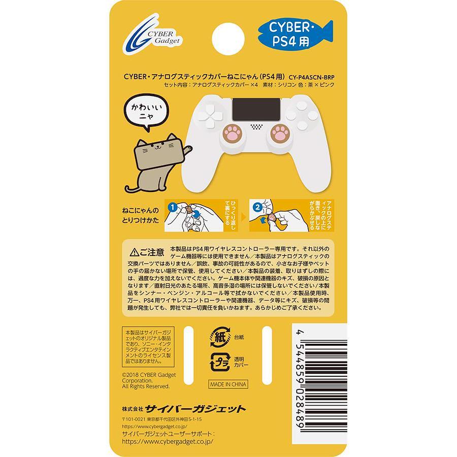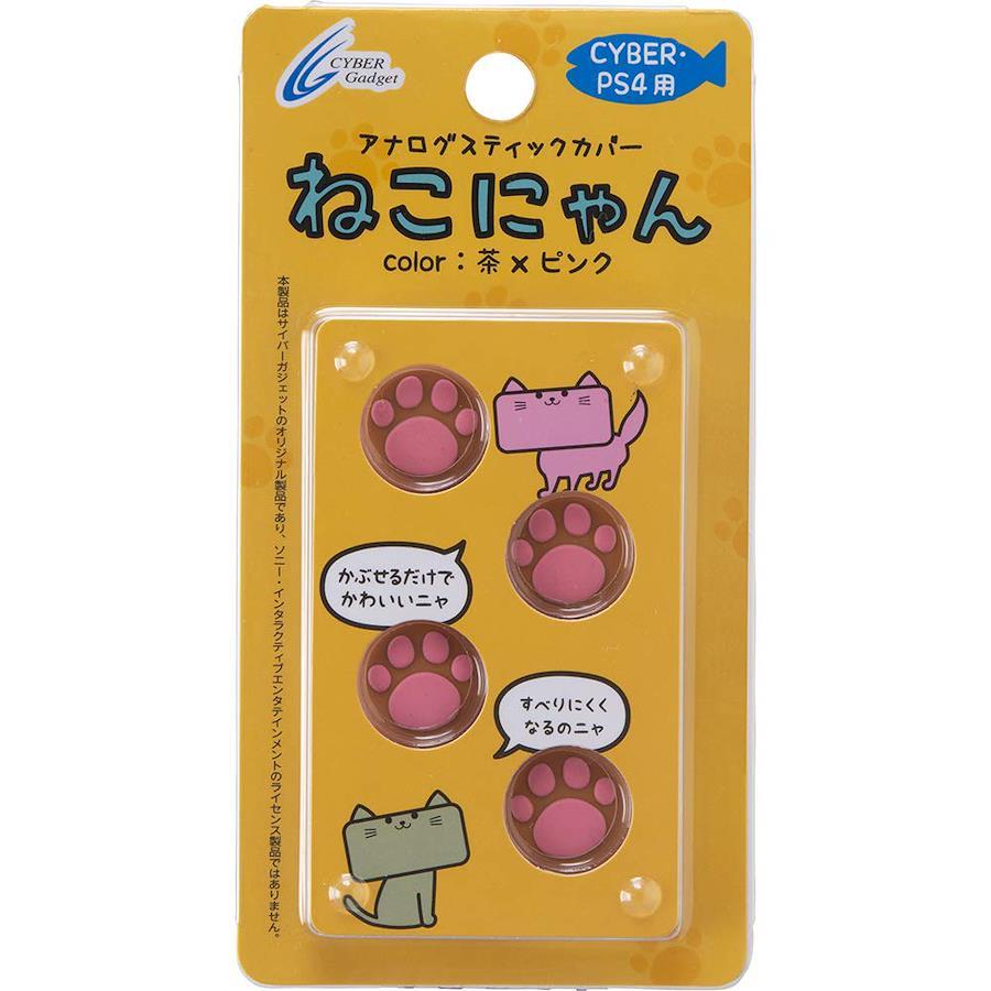 CYBER Analog Stick Cover Neko Nyan (for PS4) Brown x Pink - PS4