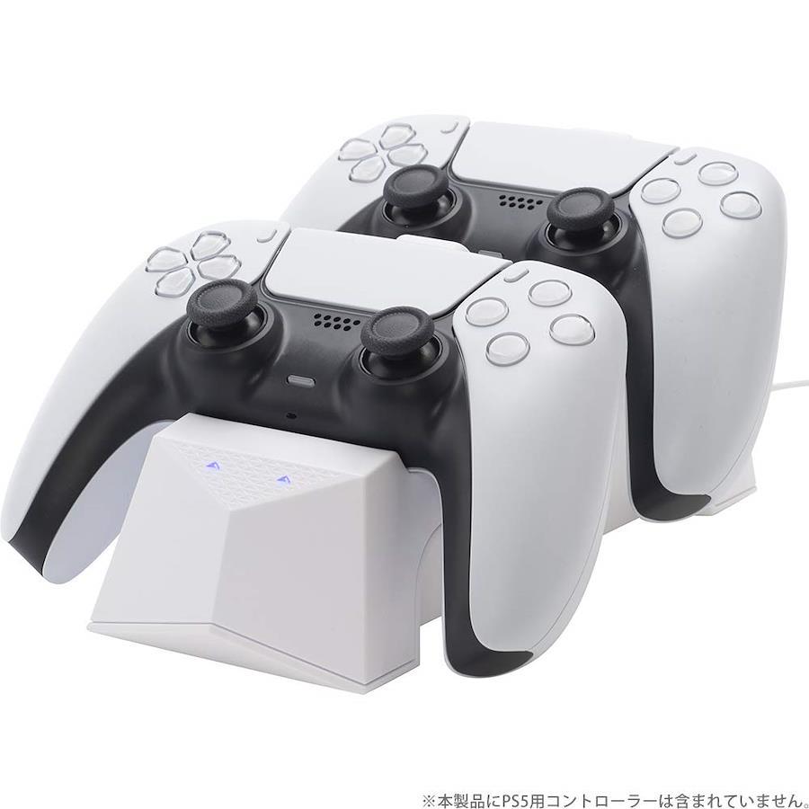:【置くだけで充電、PS5用コントローラーを2台同時に充電できるスタンド】PS5用コントローラーを2台同時に充電することができるスタンド。USBケーブルを2本用意する必要がなく、充電元のUSB Aポートも1つで済むため大変便利。※コントローラーにカバー類を装着していると本製品を使用できません。【アタッチメント付きで“置くだけ充電"】付属のアタッチメントをコントローラーに装着しておくことで、スタンドに載せるだけで手軽に充電できます。アタッチメントはコンパクトなデザインのため、コントローラーに付けたままでも邪魔になりません。商品仕様対応機種:PS5用コントローラー (DualSense)セット内容:充電スタンド×1、アタッチメント×2素材:ABSケーブル長:約1m型番 : CY-P5OCCSW-WH