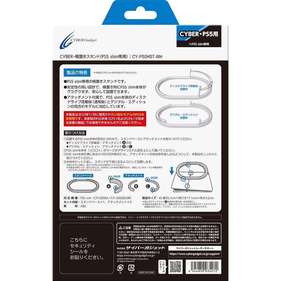 ディスクドライブ搭載版とデジタル・エディション両対応本製品はPS5 slim本体のディスクドライブ搭載版(通常版)とデジタル・エディションの両方に対応。付属のアタッチメントを付け替えることで、どちらのモデルにもご使用いただけます。■対応機種:PS5 slim専用※2023年11月に発売された小型化モデルのPS5本体に対応。従来型モデルは非対応です。※CFI-2000A (ディスクドライブ搭載版)/CFI-2000B (デジタル・エディション) 両対応。■セット内容:横置きスタンド本体×1、アタッチメント×3■素材:ABS