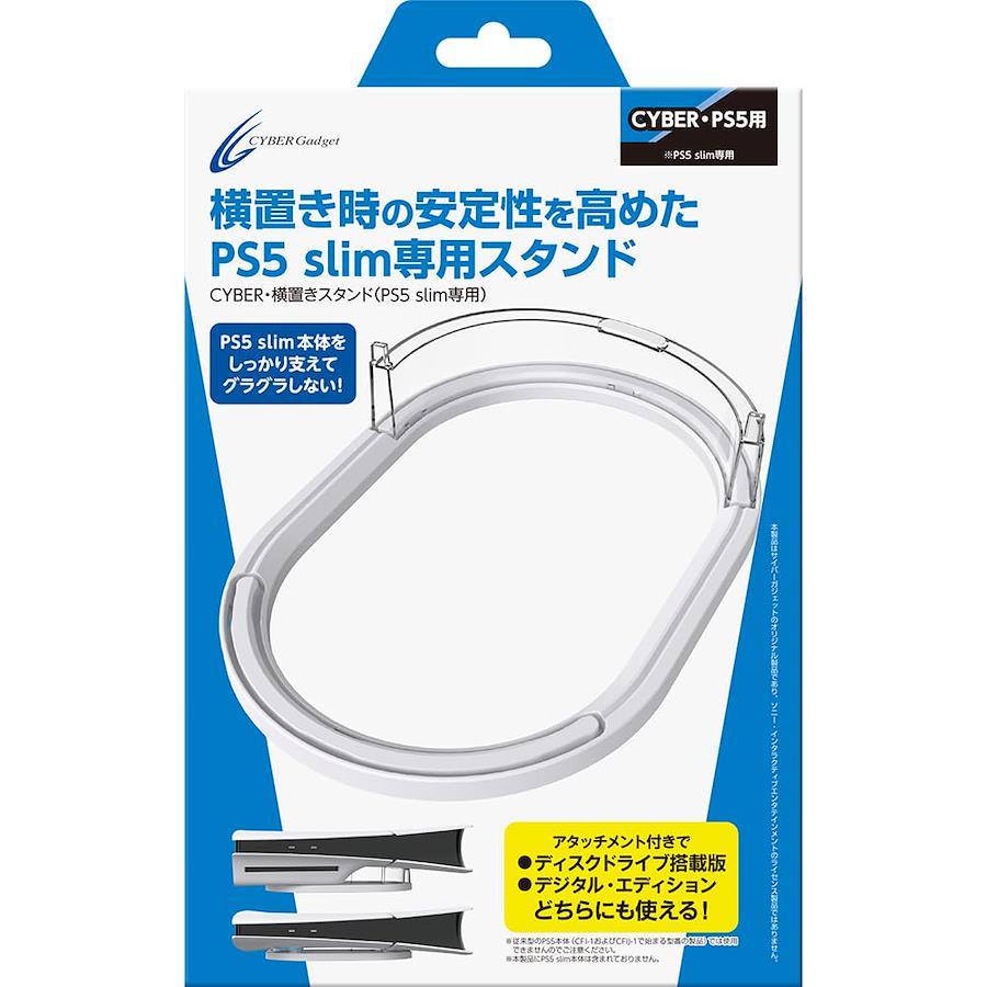安定性を高めたPS5 slim専用横置きスタンド2023年11月発売されたPS5 slim専用の横置きスタンドです。スタイリッシュな円形デザインで、PS5 slim本体付属の「横置き用フット」と比べて安定性が高いため、安心してPS5 slim本体を設置できます。