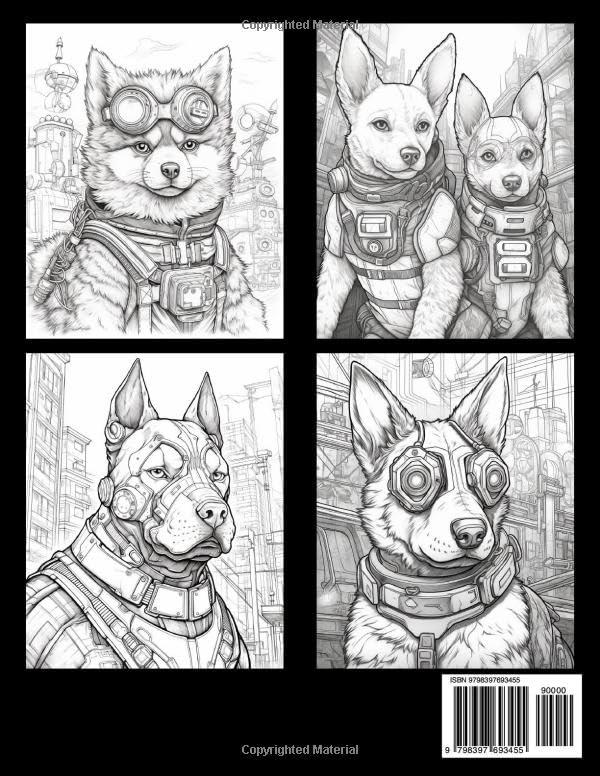 Cyberpunk Puppies: Coloring Book For Teens and Adults: Badass Cyberpunk Puppies Coloring Book