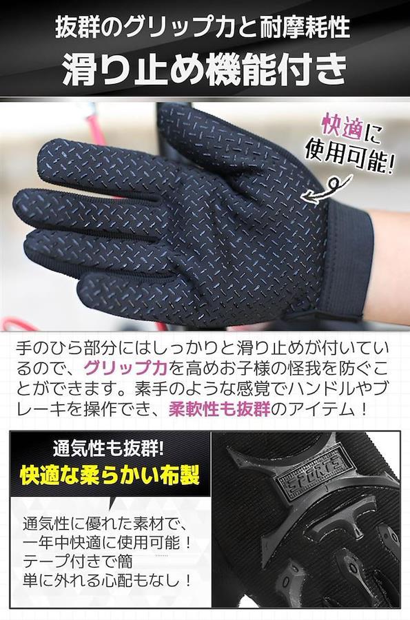 「滑り止め機能付き」手のひら部分にはしっかりと滑り止めが付いているので、グリップ力を高めお子様の怪我を防ぐことができます。
