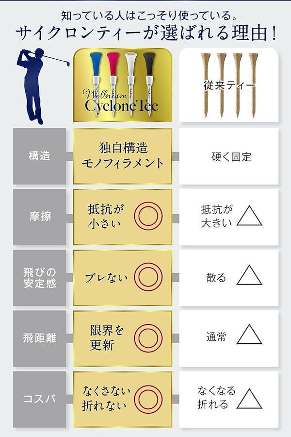 また、抵抗が少なくティー自体が遠くへ飛びにくく長期的に見て非常に経済的です。