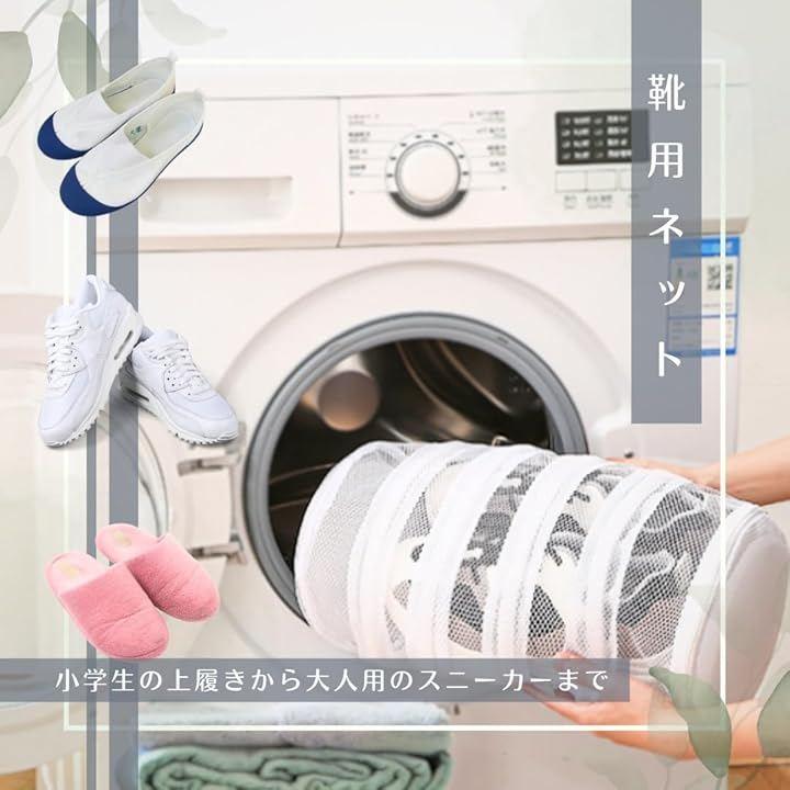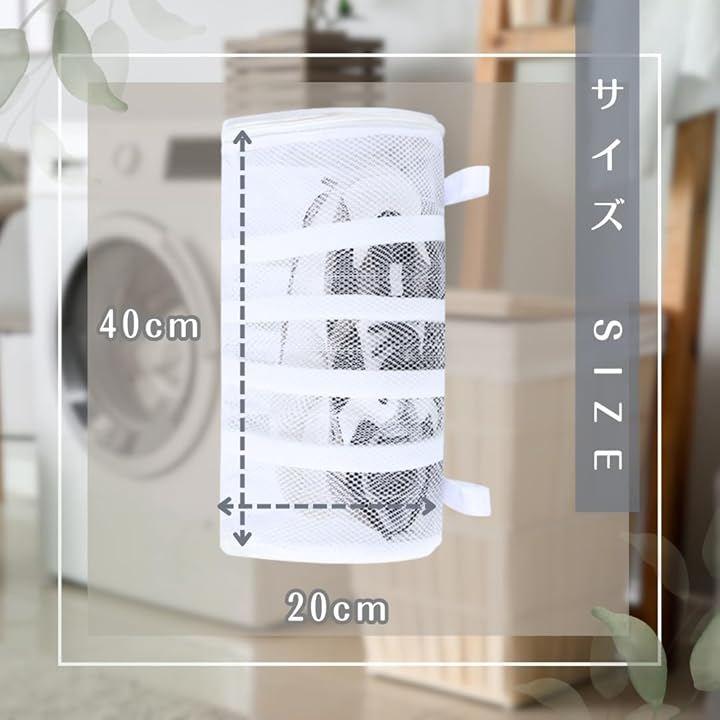 「靴用ネット」直径20cmx高さ40cmの円筒型で、大人の靴も余裕を持って洗濯可能です。
