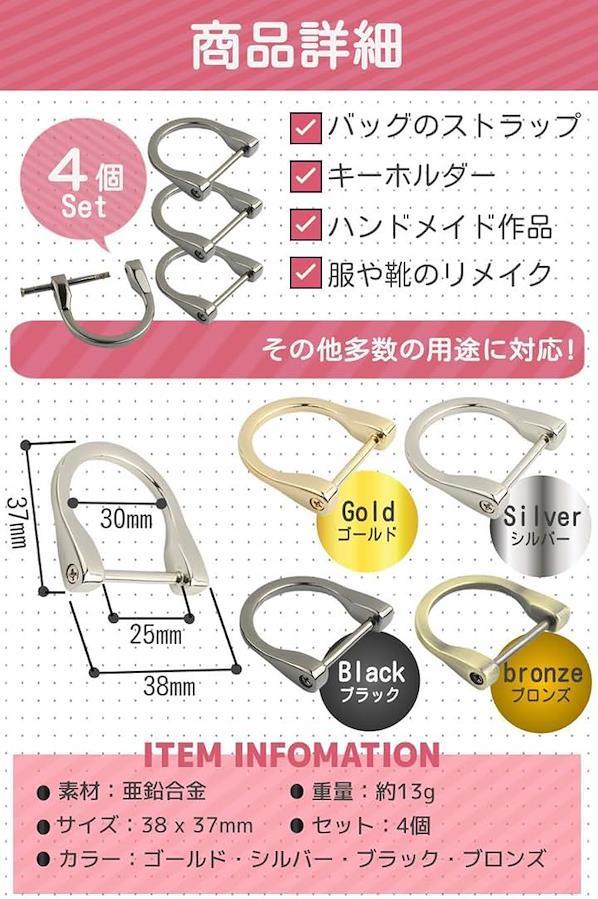 「商品特徴」(1)開閉できるネジ式:簡単に付け外しできて便利/(2)既製品に付けられる:開閉するから既製品にも後から付けられる/(3)お得な4個セット:複数使いにお得な同色4個セット/(4)高級感ある4カラー:合わせやすく高級感あふれる4カラー展開