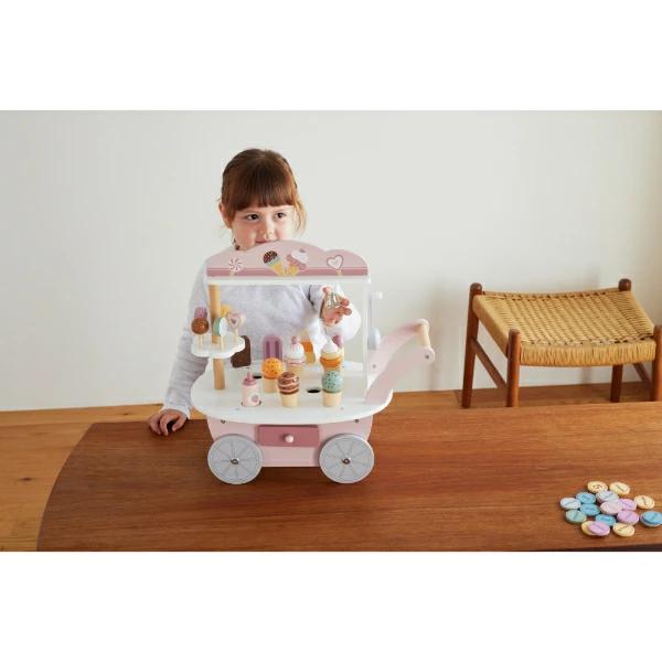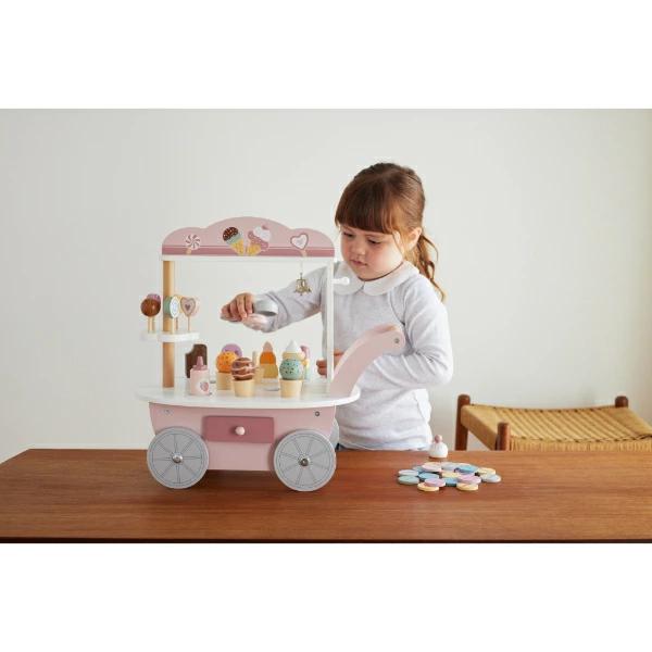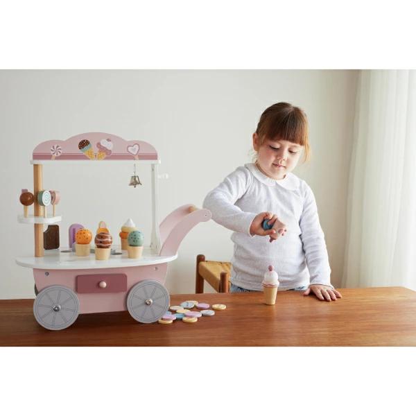 キュートなアイスがいっぱい!たのしいお店屋さんごっこができるアイスワゴンです。アイスクリーム、ソフトクリーム、アイスキャンディー、キャンディー、ソースボトル、スクープ、コインがついたアイスワゴン♪アイスクリームとコーンは自由に組み合わせられるので、遊びの幅が広がります!カートの後ろには引き出し付きで、コインを使って楽しいお店屋さんごっこができちゃいます☆付属のコインで楽しく数字にふれられるのもgood♪カラフルな色味とかわいいデザインなのでギフトにもぴったりなアイテムです☆彡【セット内容】アイスワゴン本体:1台、アイスクリーム:3個、ソフトクリーム:2個、アイスクリームコーン:3個、ソフトクリームコーン:2個、アイスキャンディ:4本、キャンディ:5個、スクープ:1個、ソースボトル:1本、コイン:20枚※この商品は組み立てが必要です。組立ての際はお子さまが近くにいない事を確認し、必ず保護者の方が行ってください。