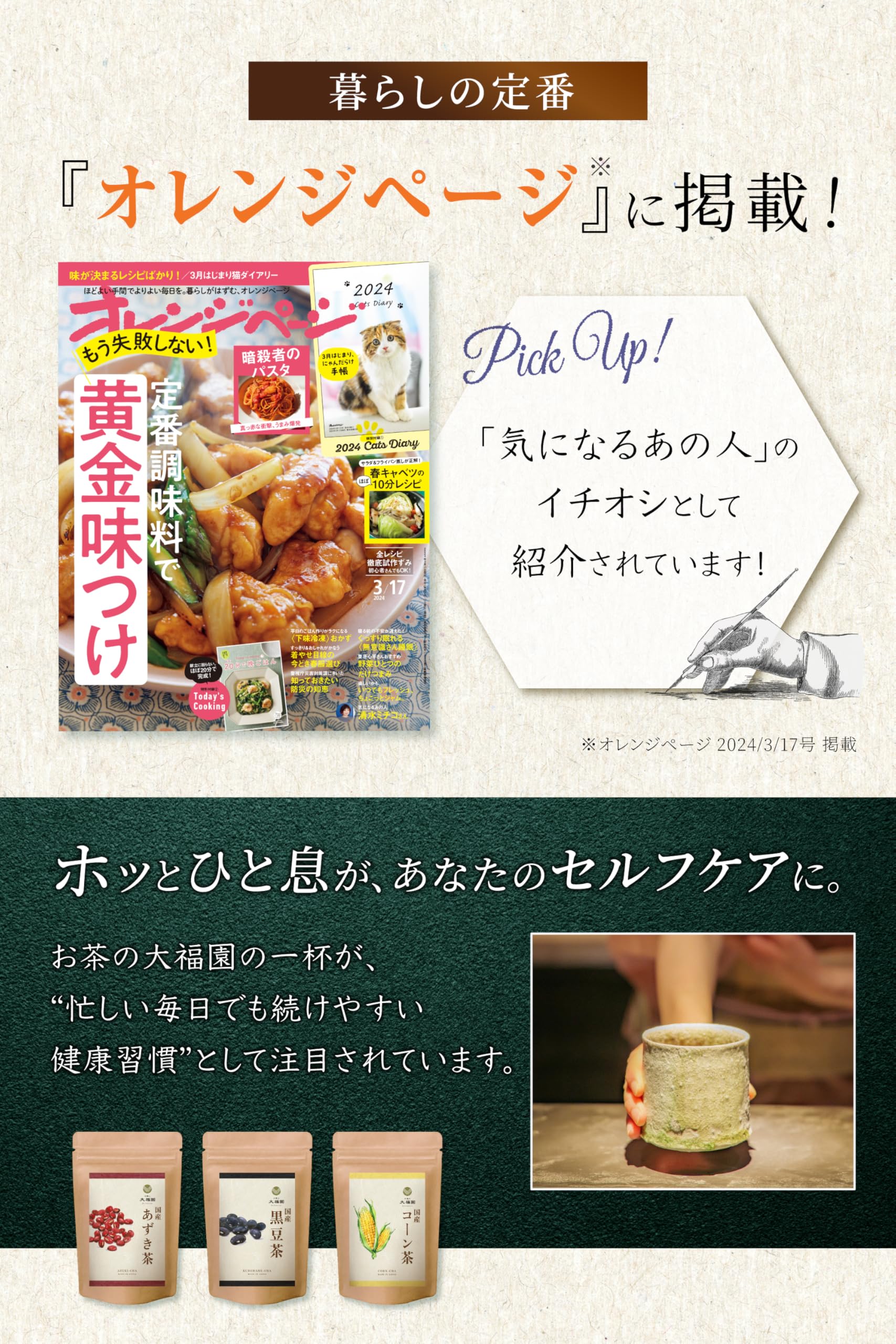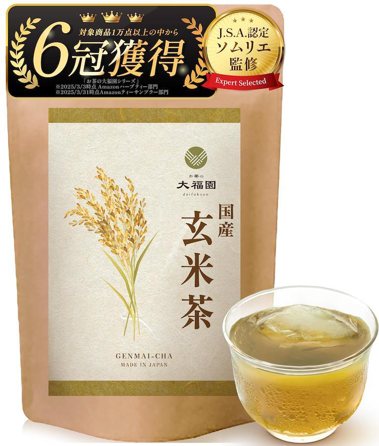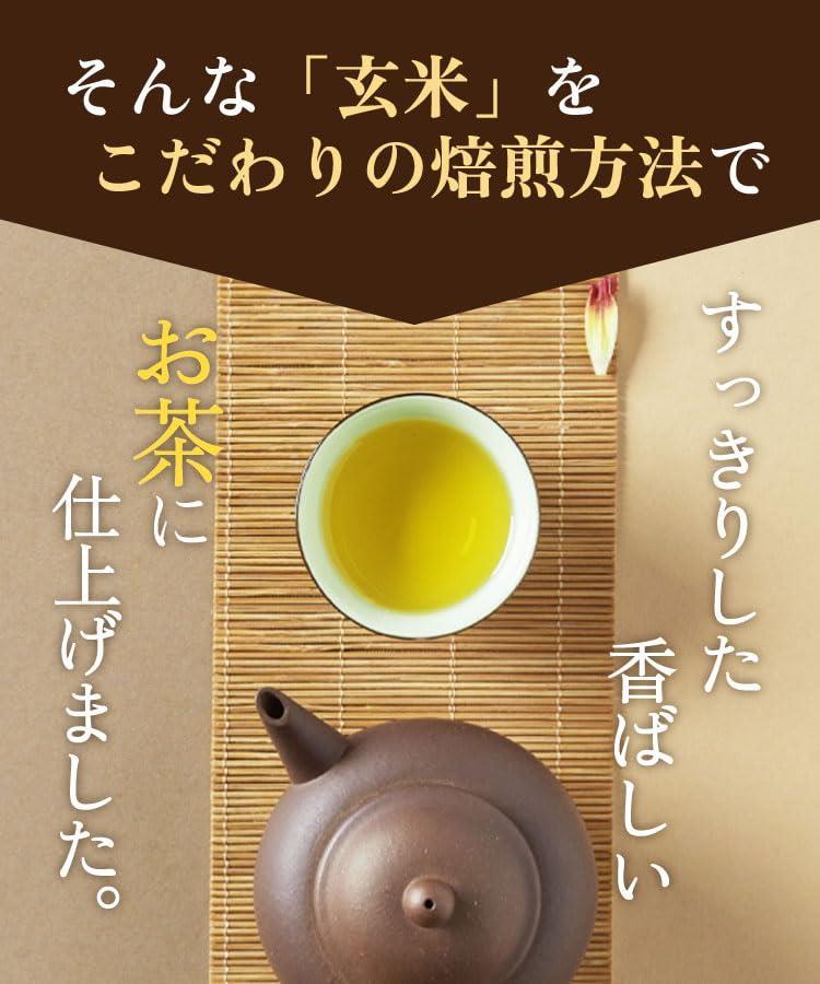 【国産玄米茶・無添加】100%国産の緑茶葉と玄米のみを使用した玄米茶です。炒った玄米の芳ばしい香りと緑茶の爽やかな味わいが絶妙にブレンドされた、世代を問わず愛される日本のお茶です。合成着色料や香料などは無添加で仕上げています。【カフェイン控えめで穏やかな飲み心地】茶葉に占める玄米の割合が多いため、緑茶(煎茶)に比べてカフェイン含有量は約半分と少なめです。刺激が少なく苦味も控えめなので、一日の終わりなど、ゆったり過ごしたい時にも気兼ねなく飲める飲みやすいお茶に仕上がっています。【豊富なポリフェノール】緑茶由来のカテキンやポリフェノールなど玄米茶特有の成分を豊富に含んでおり、健やかさを保つ働きにより、健康維持が期待できます。毎日の健康習慣をサポートする健康茶として注目されており、体を気遣う方にもおすすめのお茶です。【生活習慣サポート・食生活にも】玄米茶はほぼノンカロリーで糖分もゼロ※。日々の水分補給に適しており、食生活に気を配る方や生活習慣の改善に取り組む方にも最適です。食事の際に取り入れることで、無理なくヘルシーな習慣づくりを応援します。さらにペットボトル飲料を購入するより経済的で、ゴミ削減にもつながるエコな選択です。(※茶葉そのものにカロリーはほぼありません)【品質へのこだわり】原料は日本国内で栽培・収穫された茶葉と玄米のみを厳選使用。農薬や放射能に関する検査を実施し※、徹底した品質管理のもとで商品化しています。合成保存料や香料は一切使用しておらず、素材そのものの自然な風味をお楽しみいただけます。ご年配の方まで、ご家族皆さんで気軽に飲める玄米茶です。(※残留農薬検査実施済み)【J.S.A.認定ソムリエ監修】日本ソムリエ協会(J.S.A.)認定ソムリエが監修した特別な玄米茶です。飲料のプロの視点で茶葉と玄米の配合バランスを追求し、香り高くまろやかな味わいを引き出しました。専門家が認めた美味しさをぜひ実感してください。【便利なティーバッグ】ティーバッグタイプなので扱いやすく淹れ方も簡単。急須やマグカップに1包を入れ、熱湯を注ぐだけで香ばしい玄米茶の風味がしっかり抽出されます。後片付けも簡単で、忙しい日常でも気軽に本格的なお茶を楽しめます。外出時にマイボトルに作り置きすれば、いつでもどこでも玄米茶でリフレッシュできます。【ホットでもアイスでも】一年を通して美味しく飲めるのも玄米茶の魅力です。寒い季節には湯気とともに香ばしい香りが立つ熱い玄米茶でゆったり一息。暑い季節には水出しや冷茶ポットで冷やして、すっきりとした味わいのアイス玄米茶としても楽しめます。季節を問わずご家庭で大活躍するお茶です。【食事との相性◎】炒り米入りの玄米茶は食事のおともにも最適です。ご飯や和食との相性が非常に良く、脂っこい料理の口の中をすっきりさせるのにもぴったりです。お米が入っていることで当然ながら食事によく合い、食中・食後のお茶として幅広いシーンでご利用いただけます。日常のお茶漬けにも使えるほど飲みやすく、毎日の食卓に彩りを添えます。【ギフトにも最適なパッケージ】高級感のある和風デザインのパッケージでお届けします。贈り物にもふさわしい上品な見た目で、大切な方へのプレゼントや季節のご挨拶品にも最適です。健康を気遣う方への贈り物としても喜ばれ、日本茶好きの方にも満足いただけるクオリティです。【免責事項】メーカーによる商品リニューアルに伴いパッケージ(内容量も含む)変更が行われた場合、新パッケージでお届け致します事ご了承願います。