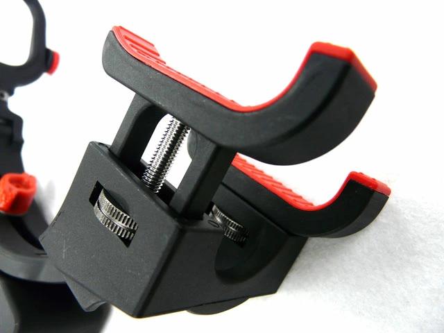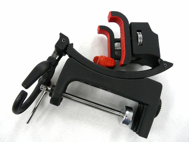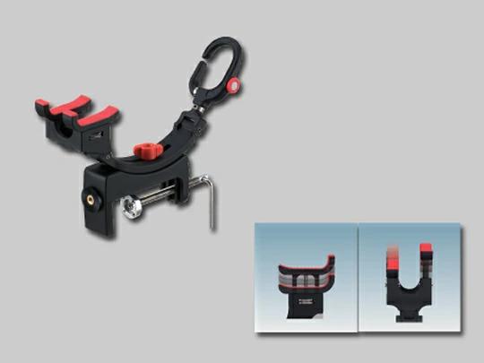 クランプはタテヨコ取付が可能で竿受の首振り・角度調節も自由自在です。
