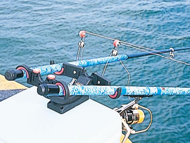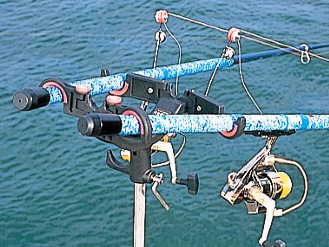 2本の竿を扇状に角度をつけてセットできるので、オマツリや仕掛絡みのトラブルが防げる。鈴の音でアタリを知らせるアタリホルダー内臓。磯ピトンからクーラーまで取付できる一台二役!