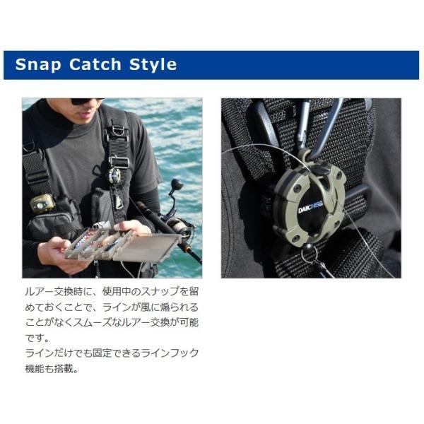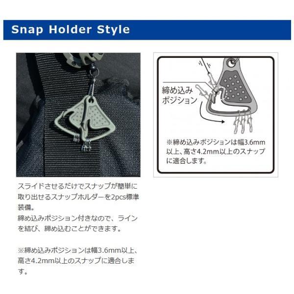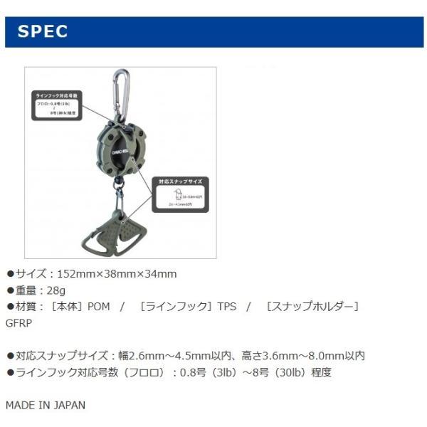 ルアー交換時にスナップやラインを固定できるアシスト機能が付いたクリップオンリール(360°回転・最長70cm)。クリップ or カラビナでゲームベストやバッグに簡単装着できます。 スナップホルダーも2pcs標準装備!●サイズ:152mm×38mm×34mm●重量:28g●材質:[本体]POM / [ラインフック]TPS / [スナップホルダー]GFRP●対応スナップサイズ:幅2.6mm~4.5mm以内、高さ3.6mm~8.0mm以内●ラインフック対応号数(フロロ):0.8号(3lb)~8号(30lb)程度 MADE IN JAPAN