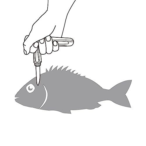 通常1-5営業日で発送:魚の脳天締めとエラ切りをこれ一本で簡単に!キャップはグリップに取り付けることでT 型のハンドル として使え、ガッチリ握りこむことができるので、力を入れて刺すことができます。 独自の先端両刃形状により軽い力で締めることが出来ます。 ねじ式キャップなので外れにくく安心。