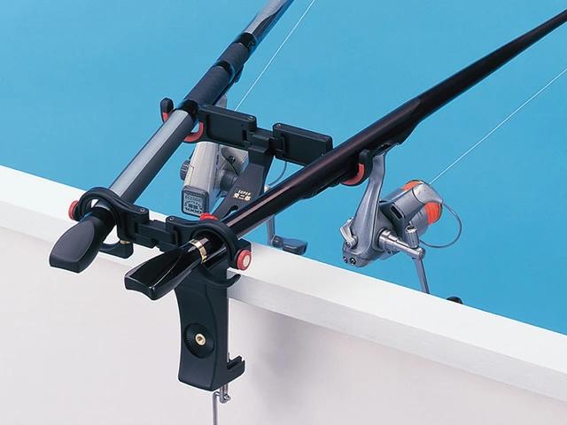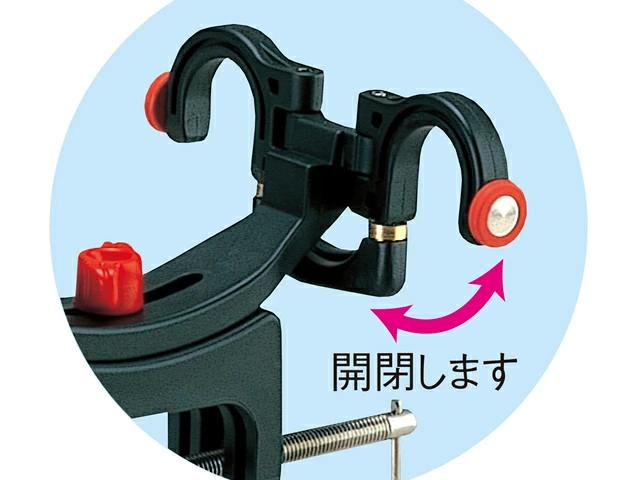 2本竿掛けタイプの手軽な竿受。2本の竿を扇状に角度をつけてセットできますので、オマツリなどの仕掛け絡みのトラブルが防げます。ラインフックと竿の脱落防止レバーを新装備。竿受部分も大きくなりさらに使いやすくなりました。