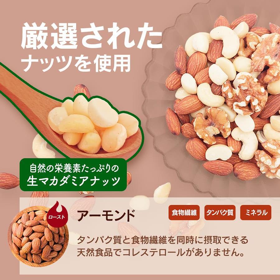 3営業日以内に発送≪新品未開封品≫● 名称:木の実 ● 内 容 量:1,050g(35g×30袋) ● 原材料名:アーモンド(アメリカ産)、くるみ、カシューナッツ、マカダミアナッツ ● 原産国:アーモンド、くるみ(アメリカ産)カシューナッツ(インド又はベトナム産)マカダミア(オーストラリア産)/くるみ、マカダミアは生。● 栄養成分表示: (1袋(35g)当たり) エネルギー 220kcal / たんぱく質 5.7g / 脂質 20.5g / 炭水化物 7.0g / 食塩相当量 0.0036g ● 賞味期限:反対面枠外上部に記載 ● 保存方法:直射日光を避けて、常温で保存してください。※商品の特性上、重量に±1~5%ほどの誤差が生じてしまう場合がございます。あらかじめご了承ください。 ● 本品は窒素充填包装をしております。※本製品工場では、小麦、乳、落花生、カシューナッツ、牛肉、くるみ、鶏肉、バナナ、キウイフルーツを含む食品を生産しています。● 開封後はお早めにお召し上がりください。 ● 農作物のため色、形状にばらつきがあります。 ● ミックス商品のため内容にばらつきが生じることがあります。 ● 農作物のため、まれに原材料の皮や殻が混入する場合があります。 ● 予告無く仕様を変更する場合があります。