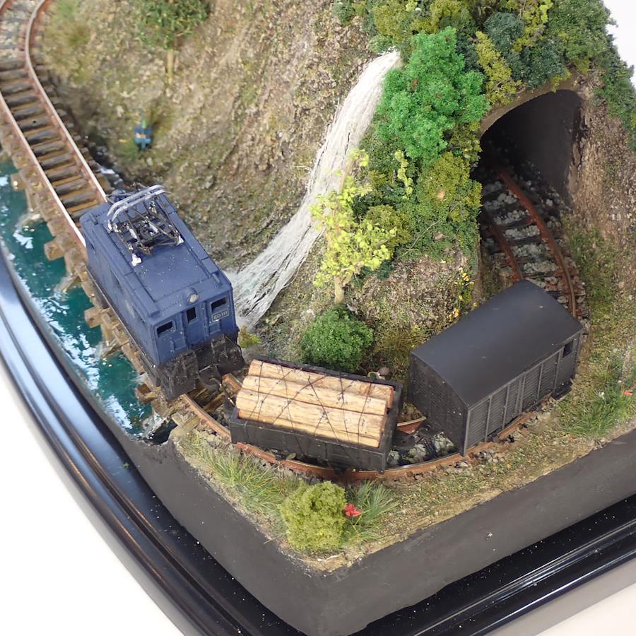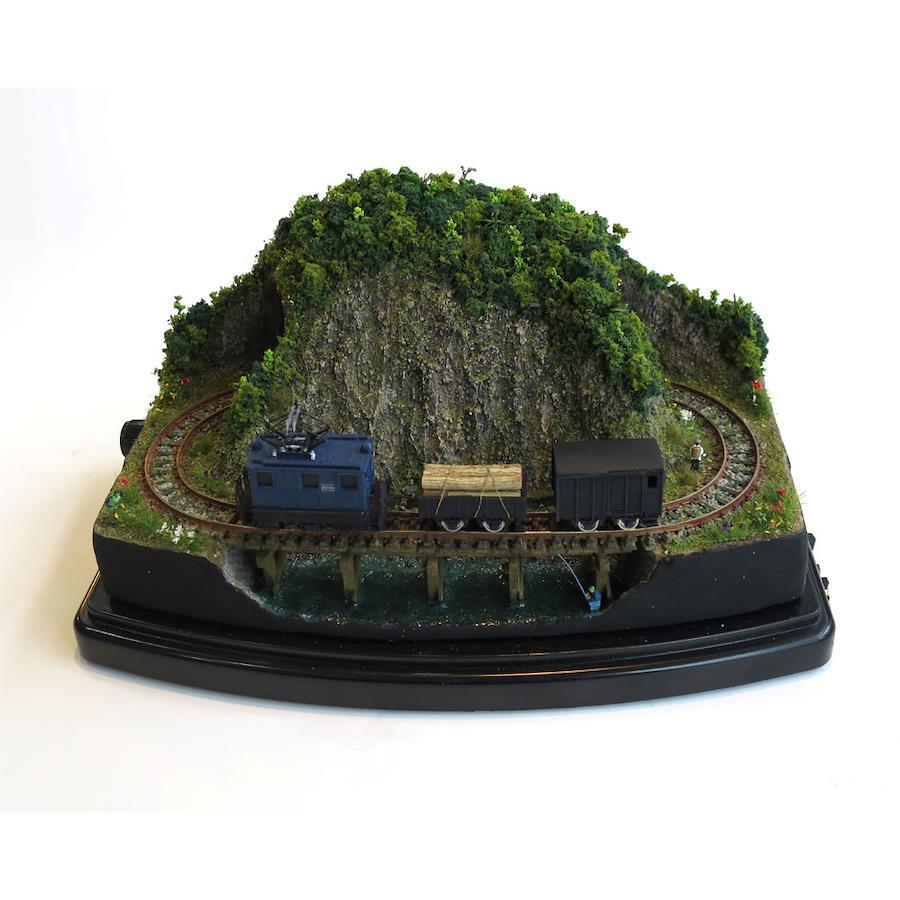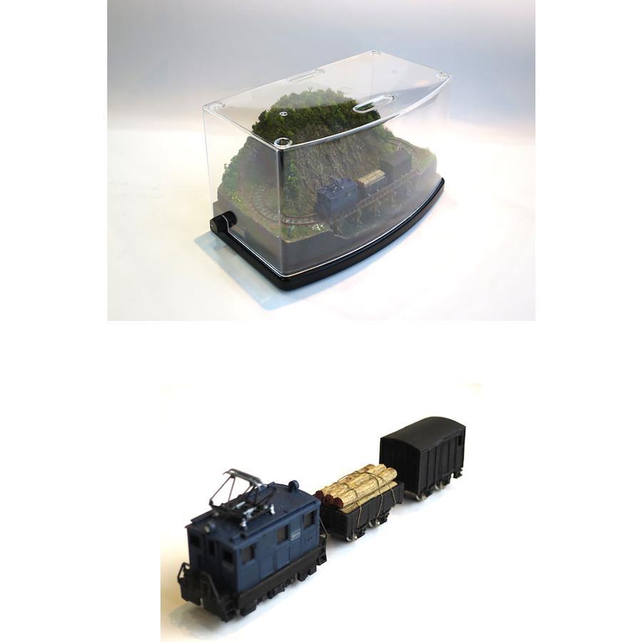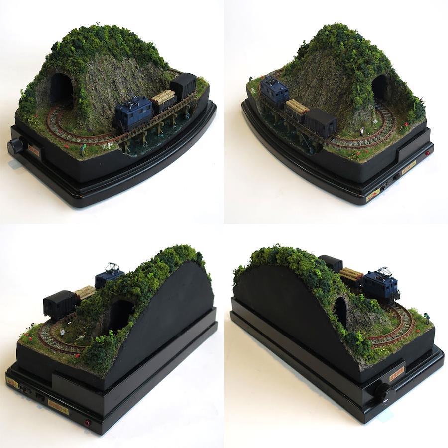 車両について:ミニミニトレイン付属。ミニミニトレインは石川氏特製の超小型車両で、ボタン電池(LR44を2個使用)を内蔵して自走。電池のセットで走行開始、電池取り外しで停止。速度調整はできません。走行用にLR44を2個お付けしてご用意。到着後すぐにお楽しみいただけます。電池残量が少ないと速度が落ちてカーブで停止してしまう場合があります。上手く走らない時は新しい電池と交換してください。