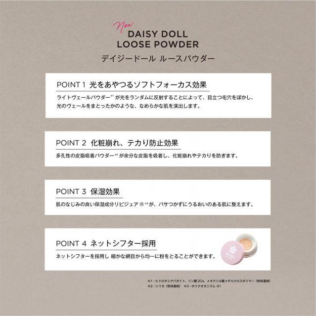 カラー:03厚塗り感がなくナチュラルなカバー力のセミマット◆商品名:DAISYDOLLbyMARYQUANT(デイジードールバイマリークヮント)ルースパウダー03厚塗り感がなくナチュラルなカバー力のセミマットパールマット肌トーンアップ保湿パウダー化粧崩れ皮脂テカリ防止パフ付き