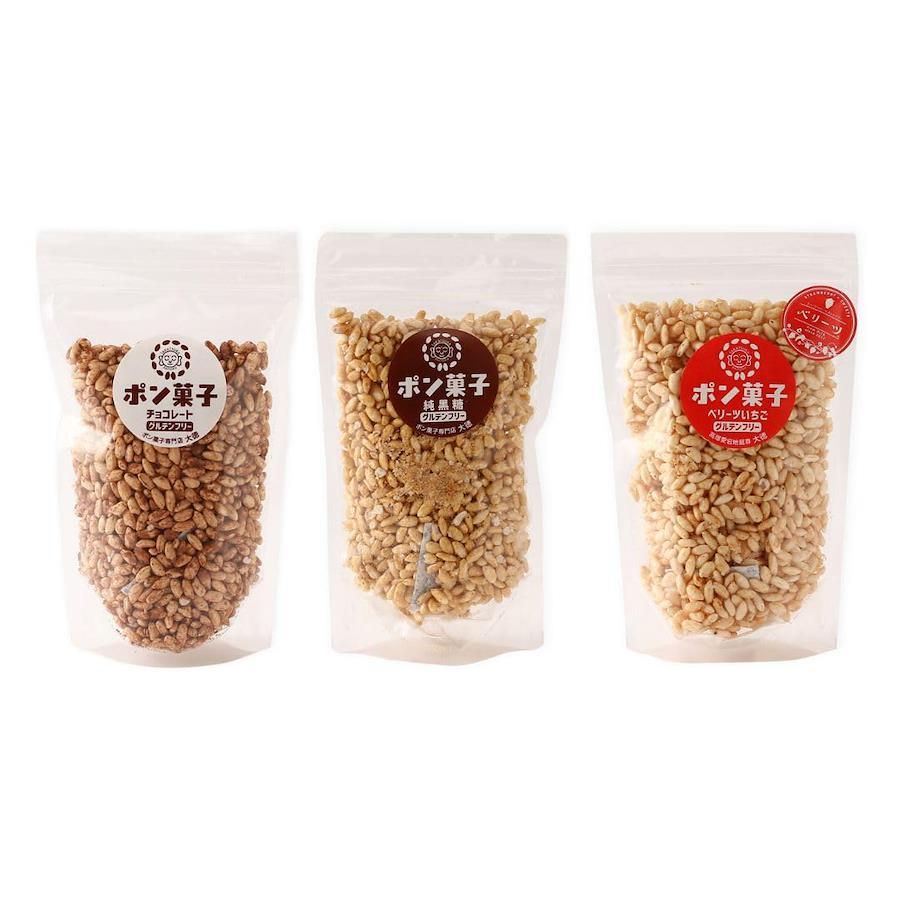 大徳 ポン菓子 3フレーバーバラエティセット(チョコレート、ベリーツいちご、純黒糖) 各60g 米菓子 無添加 グルテンフリー