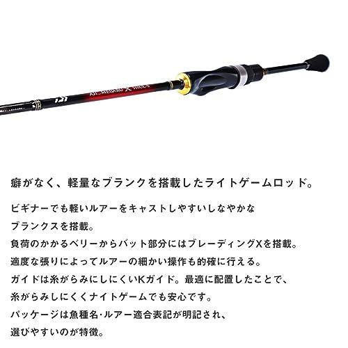 癖がなく使いやすい、ライトゲーム入門ロッド。 アジングやメバリングを始めたいエントリーユーザーに最適なライトソルトウォーターゲーム用ロッド。 癖のないしなやかなブランクによって、慣れるまで難しい軽量ルアーのキャストをスムーズに行うことができる。 一方、負荷のかかるベリーからバットの部分には、ネジレ帽子構造のブレーディングXを搭載。 パワーロスが減少するので、キャストのコントロールが付けやすく、大物がかかったときもやり取りできる。 ガイドは糸がらみしにくいKガイドを最適なバランスで配置。 視界が効きにくいナイトゲームや、風が吹く状況でも対応。
