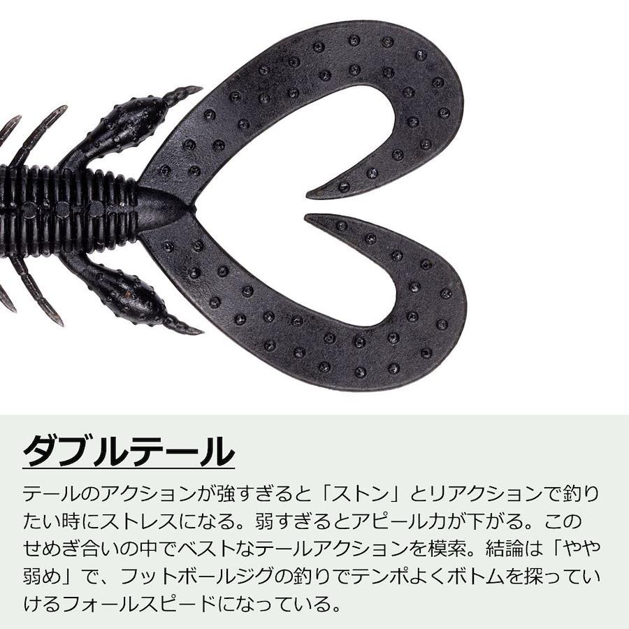 マルチジグやカバージグにピッタリなサイズ感ハイレスポンスダブルテール搭載でフリーリグにもオススメ。フックセットしやすいフックセットアシストマーカーを搭載【全長】:3インチ /【推奨フック】:WOS#1~2 / 【入数】:6本【免責事項】※メーカーのリニューアルに伴い仕様・カラー等が予告無く変更になる場合がございます。新パッケージでお届け致します事ご了承願います。