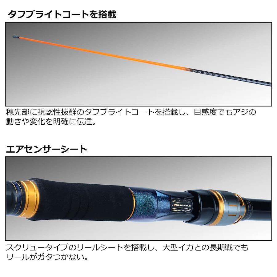 活きアジの動きやイカの気配までも正確に感じ、見えない海中の状況をイメージできる高感度を実現した手持ちヤエンスタイルに最適なインターラインロッド。穂先部に視認性抜群のタフブライトコートを搭載し、目感度でもアジの動きや変化を明確に伝達。ブランクスにはHVFナノプラスを採用し、活きアジを投入・誘導する操作性と、超撥水ドライにより少しのテンションでラインの送り出しが可能な快適性を追求。V-ジョイントによるスムーズな曲がりと柔軟性により、イカを寄せてくる際も違和感を与えず、キャッチ率も飛躍的に向上。一日中、集中力を切らさず快適に握れるエアセンサーシート(オーバル)により、正確な活きアジの操作に加え、大型イカとの長時間のやり取りでもリールがガタツキにくい。