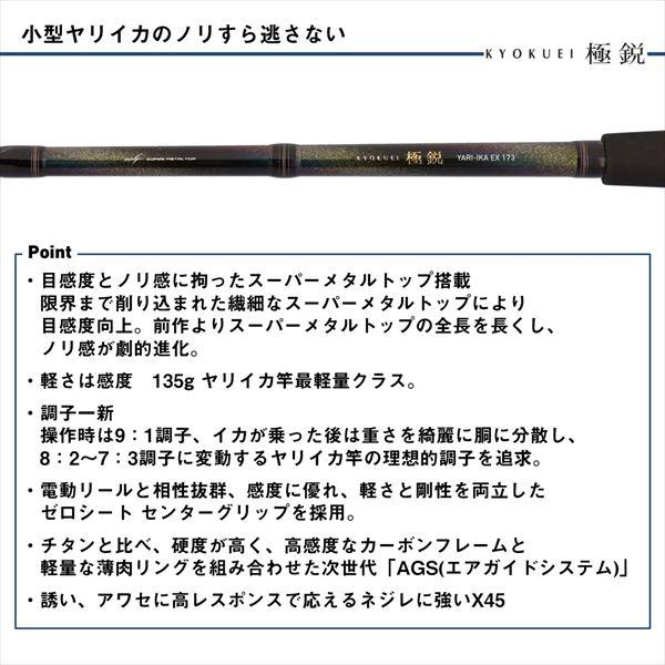 200m先の小型ヤリイカのノリすら逃さない ダイワ史上最高の目感度を実現。ヤリイカの気配を感じるために最も重要となる「SMT」を、長さ、ガイド配置、テーパーなど、考えられる要素全てを見直し、フィールドで徹底的に練磨。これにより、シャクった際のレスポンス、イカの触り、ノリ感、全てにおいてこれまでヤリイカ竿とは一線を画す実釣性能を手に入れた。この進化した「SMT」と「AGS」のRフレーム、ZEROシート、そして「EX」だからこそ使用できるカーボン素材を用いることで、達人曰く「仕掛けの落下中にイカの気配を感じられる感度」を実現。本作は操作時は9:1調子、イカが乗った後は重さを綺麗に胴に分散し、8:2~7:3調子に変動するヤリイカ竿の理想的調子を追求。これまでのダイワヤリイカ竿の歴史を紐解き、0から組み立てた珠玉の一竿が完成。 全長:1.73m 重量(g):135 継数:1 仕舞寸法(cm):173 錘負荷(号):80-180 先径:0.9mm 元径:13.7mm カーボン含有率(%):96 ※実物と色が違って見える場合があります。あらかじめご了承下さい。