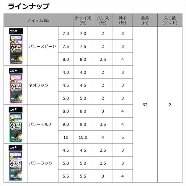 カワハギ仕掛けの新シリーズ登場!ハリス直結び式なのでお求めやすい価格設定仕掛け。もちろん驚異の貫通力サクサスを搭載、ラインも絡みにくくコシがある。Dフロン船ハリスを使用。 針タイプ:ネオフック 針サイズ:4.0 幹糸:3号 ハリス:2号 仕掛全長:62cm ※実物と色が違って見える場合があります。あらかじめご了承下さい。