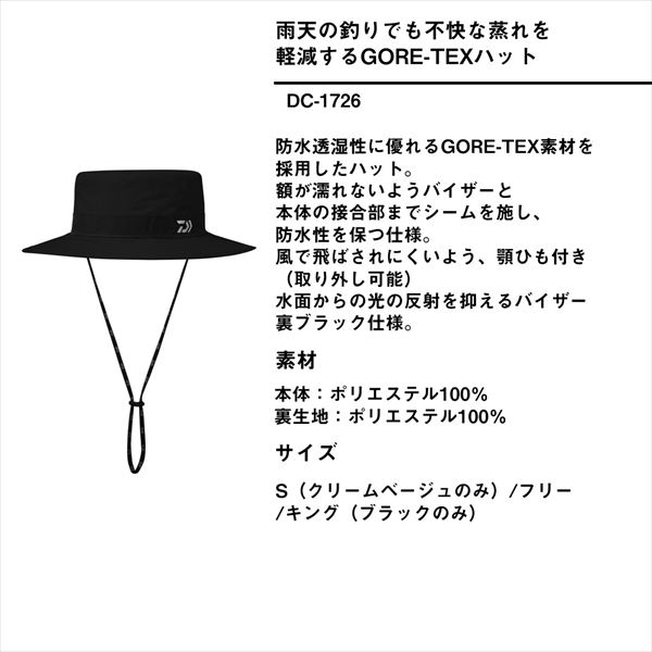 雨天の釣りでも不快な蒸れを軽減するGORE-TEXハット。防水透湿性に優れるGORE-TEX素材を採用したハット。額が濡れないようバイザーと本体の接合部までシームを施し、防水性を保つ仕様。風で飛ばされにくいよう、顎ひも付き(取り外し可能)。水面からの光の反射を抑えるバイザー裏ブラック仕様。 サイズ:フリー カラー:クリームベージュ ※実物と色が違って見える場合があります。あらかじめご了承下さい。