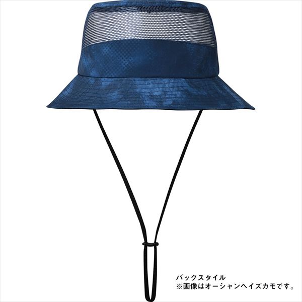 後頭部にメッシュを採用し通気性◎。後ろに大きくメッシュを使用した、涼しいハット。水面からの光の反射を抑えるバイザー裏ブラック仕様。風で飛ばされにくいよう、顎ひも付き。 サイズ:フリー カラー:マルチヘイズカモ ※実物と色が違って見える場合があります。あらかじめご了承下さい。