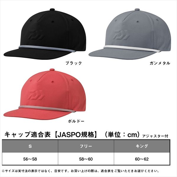 ボートシーンにおすすめのあご紐付きフラットバイザーキャップ。風の強いボートでの着用を想定し、あご紐が付いたキャップ。あご紐が不要な際はバイザーにかけられる仕様。また、後ろはエリカムストッパーのように使用することも可能。撥水加工で、海水をかぶっても染み込みにくく実釣時に便利。水面からの光の反射を抑えるバイザー裏ブラック仕様。 サイズ:フリー カラー:ボルドー ※実物と色が違って見える場合があります。あらかじめご了承下さい。