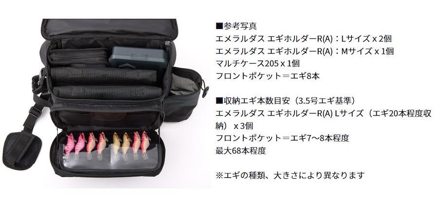 山田ヒロヒト氏監修!エギンガーの要望に応える高い機能性を追求!!デザイン、機能性も一新!使いやすさにとことんこだわったタクティカル ヒップバッグ。エギマット付きフロントポケットでエギの交換がラクラク。小物収納にも便利なスリットポケットを適所に配置。600ml程度までのボトルホルダーも完備。Dリングとスリットポケットの併用により紛失の心配を軽減。装備着脱の機動性を考慮し、ギャフホルダーや最適な角度で取り付けた腰パッド付きウエストベルト、荷重負担を分散するショルダー補助ベルト付き。本体内部への水の染み込みを抑えるコーティングを施した生地と要所に引き裂きに強いダブルリップストップナイロン生地を採用。底部は汚れがふき取りやすく、水濡れに強いターポリン生地を使用。さらに、急な雨に対応できる内蔵のレインカバー、暗やみで光を反射するリフレクターも搭載。素材:POLYESTER、NYLON本体外寸(cm):約16×32×21自重(kg):約0.78※エギマットはエギ等返しの無いカンナ・針専用です。返しのある針を使用すると抜けなくなる場合があります。