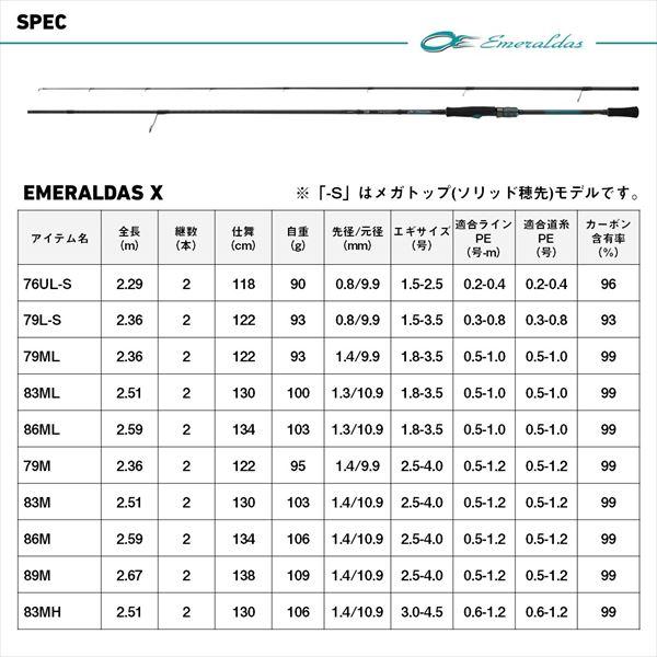 エギングの楽しさが加速する! 実釣性能を集約したハイコストパフォーマンスシリーズ■86ML・・・遠投性と操作性のバランスを重視したレングスで、1.8号~3.5号までのエギサイズに対応したモデル。秋シーズンに遠投してじっくりと探っていくスタイルに最適で、エギを高く跳ね上げるロングジャークもお手の物。バット部はX状にカーボンテープで締め上げた「ブレーディングX」を採用し、幅広いストロークを用いてラインスラックを活かしたナチュラルテンションフォールで誘うことも容易にこなせるアイテム。 全長:2.59m 重量(g):103 継数:2 仕舞寸法(cm):134 先径/元径(mm):1.3/10.9 対応エギサイズ:1.8-3.5 適合ライン(PE):0.5-1.0号 適合道糸 PE(号):0.5-1.0 カーボン含有率(%):99 ※実物と色が違って見える場合があります。あらかじめご了承下さい。