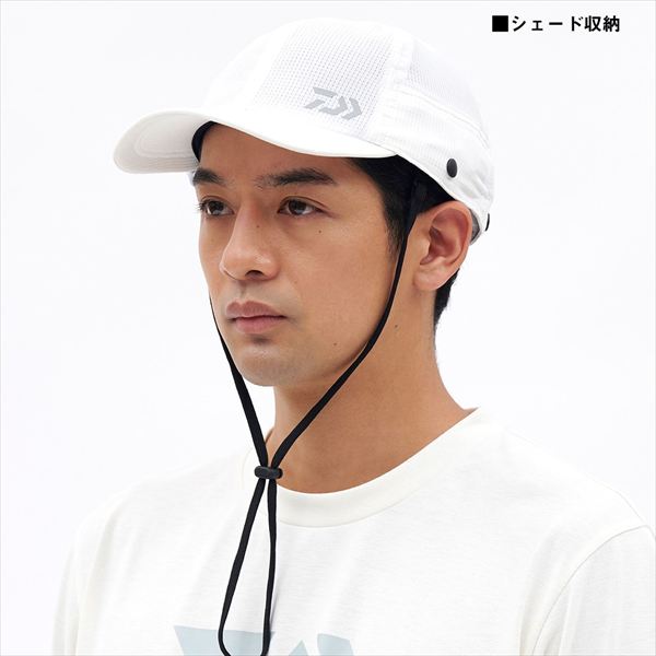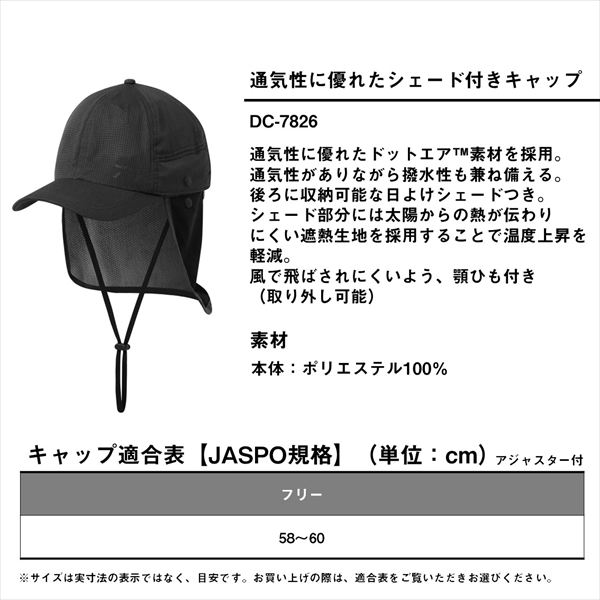 通気性に優れたシェード付きキャップ。通気性に優れたドットエア素材を採用。通気性がありながら撥水性も兼ね備える。後ろに収納可能な日よけシェードつき。シェード部分には太陽からの熱が伝わりにくい遮熱生地を採用することで温度上昇を軽減。風で飛ばされにくいよう、顎ひも付き(取り外し可能) サイズ:フリー カラー:チャコール ※実物と色が違って見える場合があります。あらかじめご了承下さい。