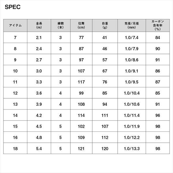 本格派の弧と佇まい、基本性能を充実させた並継へら竿のベーシックモデル。へら鮒の引きを楽しみながら、釣り場・釣り方を選ばない中硬先調子。調子は勿論のこと、水切れの良い細径、チューブラー穂先やシッカリ握れる新袋編み握りなどの高い機能と、飽きの来ない段塗りデザインを纏ったベーシックモデル。 全長:3.9m 継数:4 仕舞寸法:108cm 自重:94g 先径/元径:1.0mm/10.6mm カーボン含有率:91% ※実物と色が違って見える場合があります。あらかじめご了承下さい。