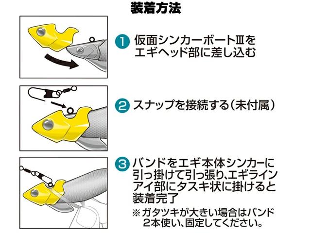 ガタツキ防止!スナップ&バンドでしっかり固定できる。目玉付き!アオリイカの魚食性に訴える3Dアイ!