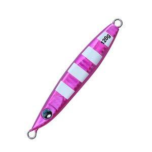 太刀魚の習性を突き詰めて完成させたリアフォールタイプのショートジグ。進化する太刀魚ジギングシーンにおいて、近年注目を集めるリアフォールタイプのジグ。太刀魚はその習性から水中でほとんど立ち泳ぎをして捕食活動を行うことに注目。リアに集中的にバランスを持っていくことで、センターバランスジグに比べ、早いフォールでレンジに到達するので、反応を外しません。ジャーク&リトリーブについては、ぶれを少なく、決めた幅での首振りアクションが太刀魚のリアクションを生み、ヒットに持ち込みます。通常トリプルやクワトロなどのフックをリアのみにつけることで、ジグ自体がまっすぐ上がってくることから、ジャーク後もバランスをあまり崩さず横向きにはなりにくいジグです。これはすなわち、立ち泳ぎをする太刀魚については、下から食いあげる形になるのでリーダーが切られにくくなるというメリットもあります。更にカラーについては、近年注目を集めるカラー中心に見直しラインナップ。太刀魚ジギングで安心して使えるカラーを目指しています。