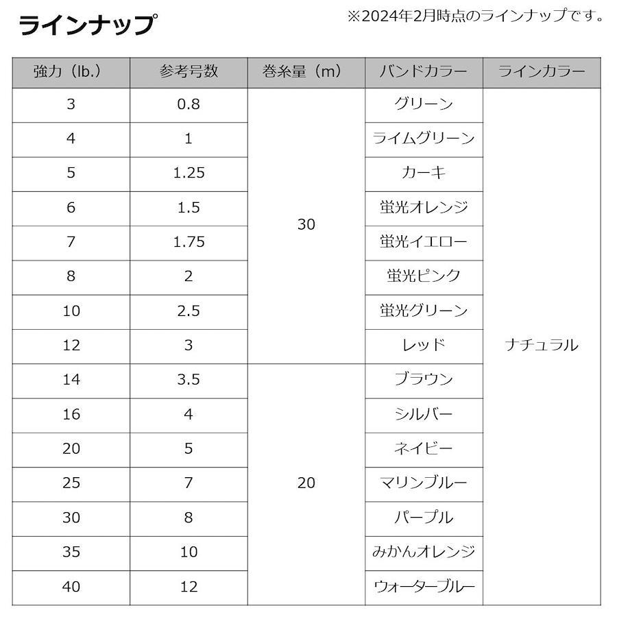 強力(lb):3参考号数:0.8カラー:ナチュラル巻糸量(m):30スプールバンドカラー:グリーン【免責事項】※メーカーのリニューアルに伴い仕様・カラー等が予告無く変更になる場合がございます。新パッケージでお届け致します事ご了承願います。