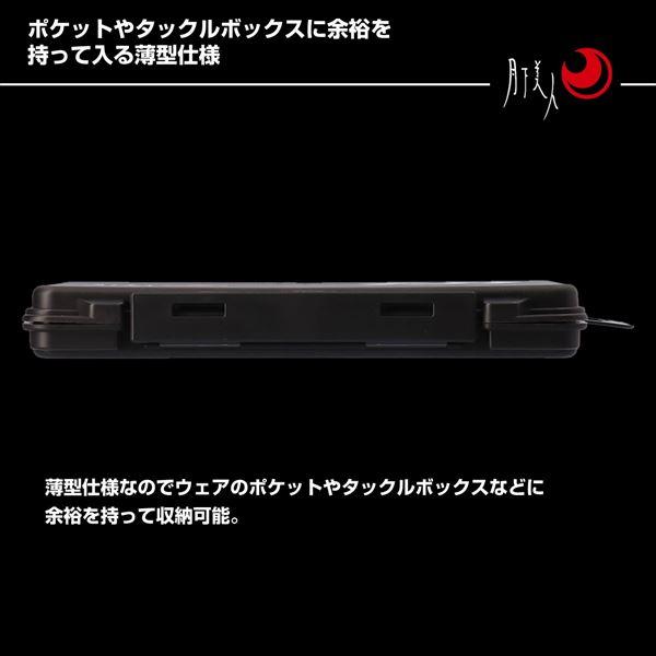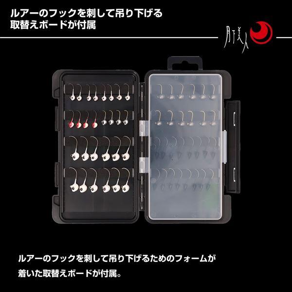 ランガンに最適!ジグヘッドをすっきり収納できる薄型の両面収納ケース。ライトソルトで使うジグヘッドの収納に適した専用ケース。ジグヘッドのフックを刺して吊り下げる取替えボードが付属。取替えボードは使い方に合わせて取り付ける位置を変更可能。観音開きの両面収納構造。ポケットやタックルボックスに余裕を持って入る薄型仕様。フックやルアーどうしの干渉を防ぐパーテーション付き。取替えボード8枚付属 外寸:約17.5×10.5×2.2cm カラー:ブラック ※実物と色が違って見える場合があります。あらかじめご了承下さい。