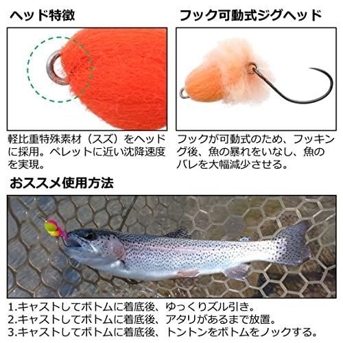 通常1-5営業日で発送:釣れない時の救世主「鱒ノ華」が更に釣れるようになってリニューアルモデル!水を含んでウェイトアップすることで簡単にキャストが可能!ヘッド内部には軽比重特殊素材(スズ)を採用。ペレットに近い沈降速度を実現。フックが可動式のため、フッキング後、魚の暴れをいなします。魚のバレを大幅減少させます。「ボトムノック」「ステイ」「ズル引き」誰でも簡単に扱え、フック交換も可能!(※注意 本商品のジグヘッドはフェザージグに分類されます。管理池によってはフェザージグを使用できないケースがあります。使用する際は各管理釣り場のルール、レギュレーションに従い、楽しく釣りをお楽しみ下さい。)