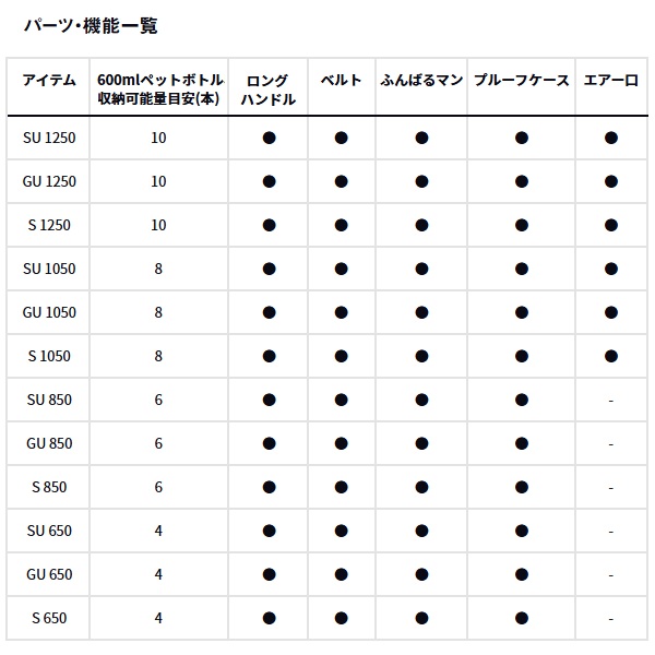スポーツやアウトドアにピッタリ!ペットボトルや食べ物にも最適な小型クーラーに真空保冷タイプが新登場!用途に合わせて選べる12.5L、10.5L、8.5L、6.5Lの4サイズ。高保冷の真空パネル仕様、ウレタン仕様、軽量スチロール仕様の3グレード。サンドイッチやオニギリを濡らさず収納できるプルーフケース付き。ペットボトル600mlが縦置き収納可能。12.5Lは最大10本、10.5Lは最大8本、8.5Lは最大6本、6.5Lは最大4本(6.5Lは横置き)。自転車の前カゴに入れやすいサイズ設計(8.5L、6.5L)。●持ちやすいロングハンドルと肩ベルトが標準装備 ●取り外し可能でお手入れ簡単な両開き上フタ ●安心して座れる頑丈ボディ 上フタが平らで座りやすい ●底面には滑りにくいふんばるマン 容量(L):6.5 重量(g):1.9 外寸(cm):22×33×25 内寸(cm):15×22×19 ※実物と色が違って見える場合があります。あらかじめご了承下さい。