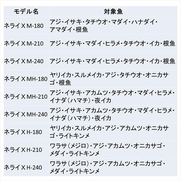 全長:2.40m 継数:2 仕舞寸法:181cm 自重:180g 先径/元径(mm):1.9/12.6 錘負荷:50-150号 カーボン含有率:70% 粘り強さと操作性に優れた汎用7:3調子 人気のネライシリーズ!●しなやかさと粘り強さを合わせ持ち、幅広いターゲットに対応する汎用性に優れた7:3調子。感度にもすぐれ、シャープな操作性を兼ね備える。強度とスムーズな曲がりを追求したグリップ部でジョイントする変則2ピース設計。コマセシャクリの釣りから、底を釣る根魚、疾走する青物まで、幅広いターゲットをあらゆるシーンで狙い撃つ。(2019年発売モデル)※掲載している商品の画像は代表画像を表示しています。また実物と色が違って見える場合があります。あらかじめご了承下さい。