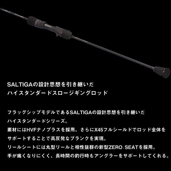 SALTIGAの設計思想を引き継いたハイスタンダードスロージギングロッド。フラッグシップモデルであるSALTIGAの設計思想を引き継いだハイスタンダードシリーズ。SALTIGA譲りの調子設計に加え、感度・操作性・強度・快適性といったスロージギングロッドに求められる性能を高次元で融合。素材にはHVFナノプラスを採用、さらにX45フルシールドでロッド全体をサポートすることで高反発なブランクを実現した。リールシートには丸型リールと相性抜群の新型ZERO●SEATを採用。手が痛くなりにくく、長時間の釣行時もアングラーをサポートしてくれる。 全長:1.85m 重量(g):112 継数:1 仕舞寸法(cm):185 ジグ重量:150-250g 適合ライン(PE):MAX2.0号 先径/元径(mm):1.8/8.0 カーボン含有率(%):96 ※実物と色が違って見える場合があります。あらかじめご了承下さい。