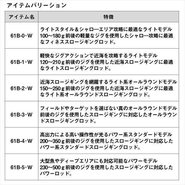運動神経抜群のフラッグシップスロージギングロッド。軽量&ぶち曲げコンセプトはそのままに運動神経を大幅に向上し、アングラーの負担軽減と究極の水中の感度を実現。■61B-0・・・ライトスタイル&シャロ―エリア攻略に最適なライトモデル61B-0は、100~180g前後の軽量なジグを使用したシャロ―攻略に最適なフィネススロージギングロッド。超細身ながら高い反発力を誇るブランクは理想的なジグへの入力と快適なジャークを実現。#0がもつジグを跳ねさせすぎないしなやかなロッドアクションはライトスロージギングはもちろん、魚がなかなか口を使わないようなシビアなシチュエーションでも真価を発揮。一方、不意の大物でもSALTIGAならではパワーを備え安心してファイトすることができる。 全長:1.85m 継数:1 仕舞寸法:185cm 標準自重:103g 先径/元径:1.5mm/7.5mm ルアー重量 ジグ:100-180g 適合ライン PE:MAX1.5号 カーボン含有率:99% ※実物と色が違って見える場合があります。あらかじめご了承下さい。【ダイワ キャスティング情報2023】