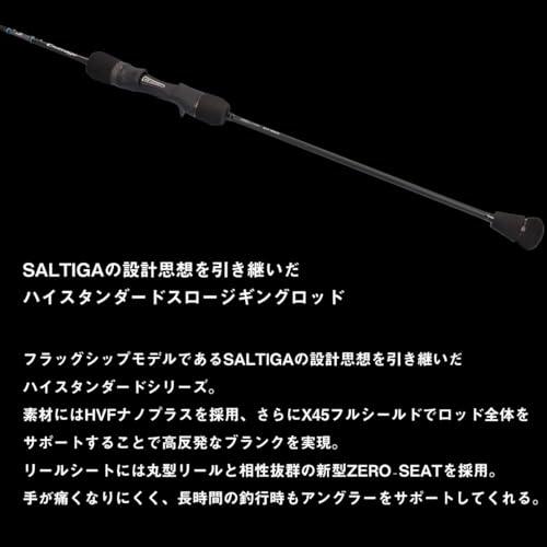 SALTIGAの設計思想を引き継いだハイスタンダードシリーズ。 SALTIGA譲りの調子設計に加え、感度 操作性 強度 快適性といったスロージギングロッドに求められる性能を高次元で融合している。素材にはHVFナノプラスを採用、さらにX45フルシールドでロッド全体をサポートすることで高反発なブランクを実現した。 リールシートには丸型リールと相性抜群の新型ZERO₋SEATを採用。手が痛くなりにくく、長時間の釣行時もアングラーをサポートしてくれる。