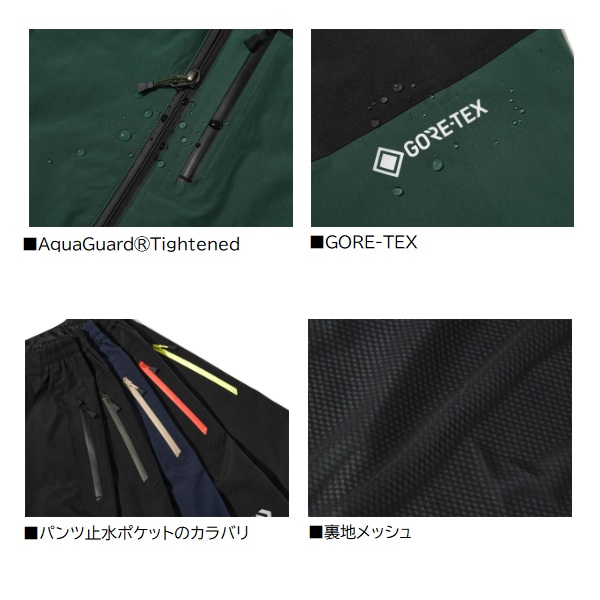 定番GORE-TEXレインスーツに耐水性を高める「AquaGuard Tightened」を採用。優れた防水性、防風性、透湿性を有する2層構造のGORE-TEX生地を採用することで、柔らかくしなやかな着心地。フロントファスナーには、YKKとの開発で実現したAquaGuard Tightenedを搭載。従来の止水ファスナーより耐水性が大幅に向上。軽量化するとともにファスナーの生地噛みがなくなり、スムーズな開閉が可能。表地は環境配慮されたGORE-TEX ePE膜となり、前モデルより軽量で丈夫なレインウエアへ。環境負荷の少ないフッ素フリー撥水剤を使用したモデル。裏地にメッシュを配した二重構造とすることで、肌離れがよく、雨を肌で感じにくくなり、肌寒い時にも快適に着用可能。ポケットには止水ファスナーを採用し、防水性を重視。袖口から水の浸入を軽減する二重袖口採用。パンツポケットにも止水ファスナーを採用。裾にはベルクロを配し、絞り込むことが可能。 サイズ:M カラー:サルファースプリング ※実物と色が違って見える場合があります。あらかじめご了承下さい。