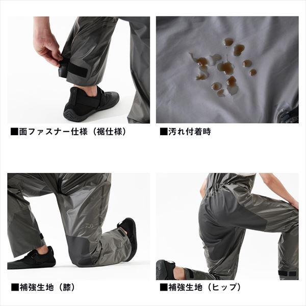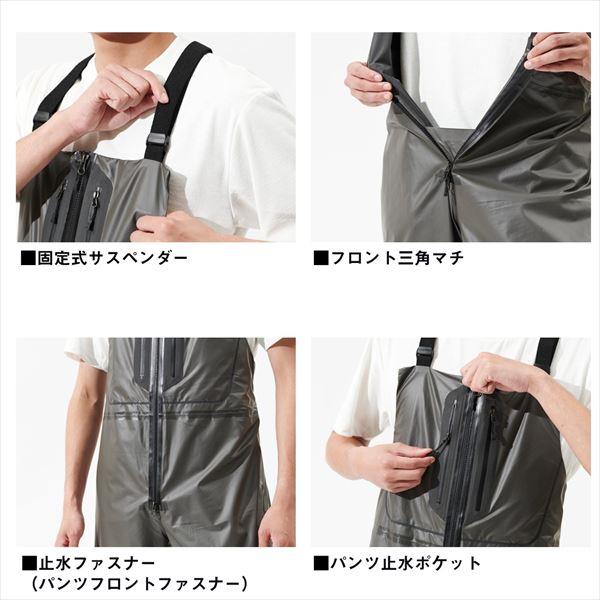 汚れの付きにくさと透湿性を兼ね備えたレインビブ。汚れや海水が付いても、水でさっと洗えば落ちやすい素材を開発。表側に防水層をもってくることで、水が生地に染み込まず、ドライで乾きやすい。PU,PVC等の船レインと比べ、透湿性があるため、衣服内が蒸れにくく、気温の高い時期でも快適に着用可能。船レインと比べ、シルエットをスリムにすることができ、動きやすい。擦れやすい膝部、尻部は二重に補強。フロントには上下から開閉できる止水ファスナーを採用。単体でも使用しやすいよう、胸ポケットを搭載。※透湿防水層を最外面に配した特殊構造のため、過度の擦れに弱い性質があります。製品によっては色ムラが出る可能性があります。※特殊な防水加工を施しているため、撥水スプレーは使用しないでください。 サイズ:2XL カラー:グレー 素材:本体 ナイロン100% ※実物と色が違って見える場合があります。あらかじめご了承下さい。
