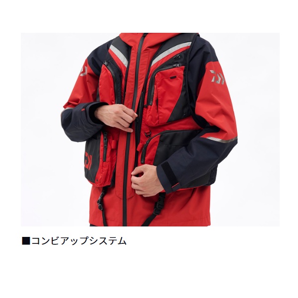 春夏向けの快適な磯用レインスーツ。磯釣りや船釣りにおすすめのレインスーツ。船釣りの際やフローティングベストを着ていても目立つように肩部分にロゴを配置。2.5層レイン素材のため、軽量ながらもしっかりとした生地で磯のようなハードな環境下でも安心感のある着用感。フロントにはフローティングベストを連結できるコンビアップシステム対応。高めの脇ポケットは、フローティングベスト着用時でも使用しやすい位置に設定。キャップインクリップ対応でキャップとフードを合体し、頭部の動きと連動させることで視界を確保。パンツウエスト部は調整しやすく、ずり落ちにくいバックル付きベルトを採用。 サイズ:2XL カラー:ブラック ※実物と色が違って見える場合があります。あらかじめご了承下さい。