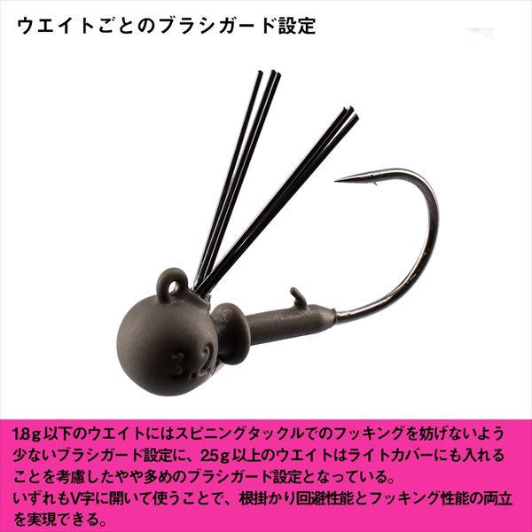 シンプルで使いやすい基本のスモールラバージグ。コンセプトは、「基本のスモラバ 」。誰でも使いやすくて、様々な状況に対応で きる、そんなスモラバ。ヘッドはどんな場面でも対応力の高いラウンド形状を採用。ワームキーパーにはワイヤーを採用し、トレーラーを しっかりホールドしてくれる。フックは 1.8g以下のウエイトにスピニング専用の細軸 タイプを、2.5g以上のウエイトにベイトフィネス兼用の太軸タイプを採用し、使用するタックルに合わせて快適に使うことができる。ガードは太めのブラシガードを 採用し、根掛かりの多いオカッパリの釣りにもしっかり対応。V字に開いて使うことで根掛かり回避性能とフッキング性能の向上を両立できる。バスフィッシングを始める最初の1個としてオススメできる基本性能の高いスモラバに仕上がっている。 重量(g):3.2 素材:鉛 ※実物と色が違って見える場合があります。あらかじめご了承下さい。