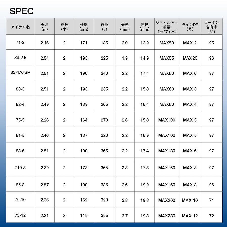 最新テクノロジーで基本性能が大幅進化「SALTIGAキャスティングモデル」が完全リニューアル■自重(g):185 ■全長(m):2.16■継数(本):2 ■仕舞(cm):171■先径/元径(mm):2.0/13.9 ■ルアー重量(g):MAX50■ラインNo.(PE):MAX2 ■カーボン含有率(%):95【免責事項】※メーカーのリニューアルに伴い仕様・カラー等が予告無く変更になる場合がございます。新パッケージでお届け致します事ご了承願います。